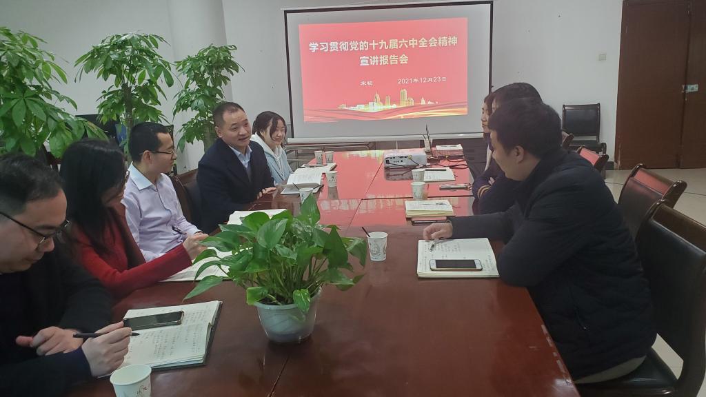 12月23日下午,太阳成tyc122cc曼城联合公司学习贯彻党的十九届六中全会精神宣讲报告会在公司426会议室召开。太阳成tyc122cc党的十九届六中全会宣讲团成员、材料科学与工程公司党委书记宋韧作辅导报告,公司全体领导班子成员、材料科学与工程公司全体领导班子成员,公司党员代表参与了学习。