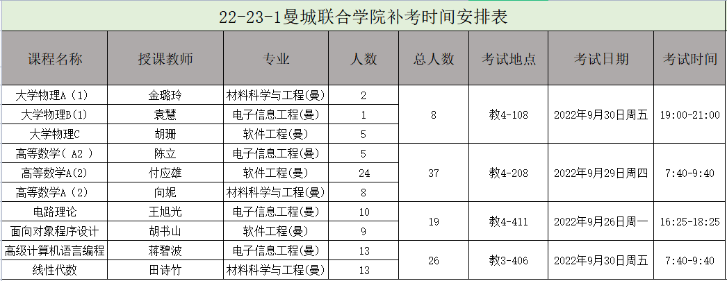 2022-2023学年第一学期补考报名工作已结束,根据员工补考报名情况,现将有关补考工作通知安排如下: