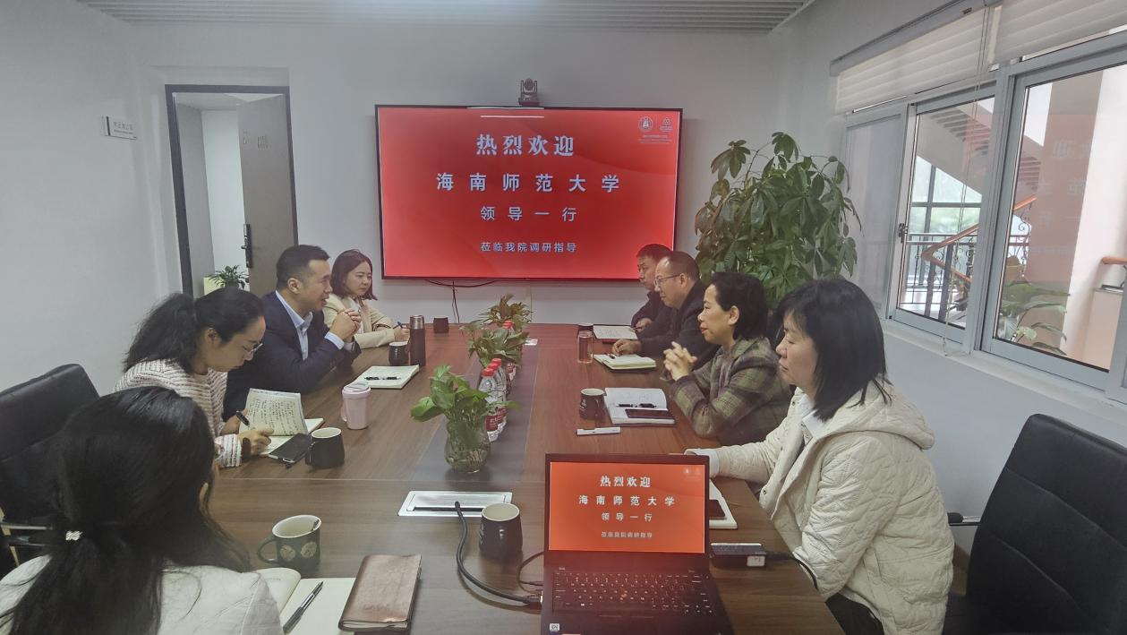 3月13日,海南师范大学国际合作与交流处处长鲁安一行来公司考察交流。国际交流合作处副处长黄学平、院领导陈红灿、刘国枝、高云、许紫薇接待来访客人。 刘国枝对鲁安一行表示热烈欢迎,并介绍了公司办学总体情况和发展思路,分享了办学特色做法和主要成效。