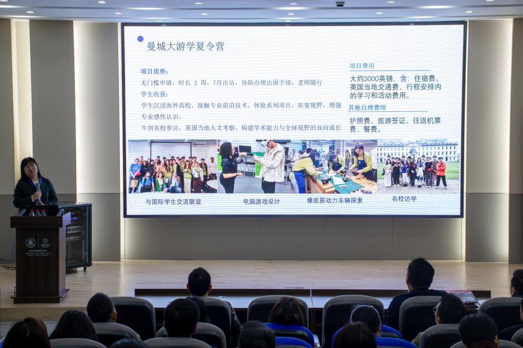 副经理高云则聚焦双轨协同国际化育人体系,解析公司“2+2”,“4+1”联合培养、冬夏令营等国际化项目的优势与价值。团委书记刘阳卓通过典型案例,阐释员工成长支持体系与发展路径。各专业负责人现场解码材料、电子信息与软件工程等专业前沿领域,带领家长亲身走进“湖大—曼城大联合智能传感创新中心”,体验孩子在公司的实验与科创日常。