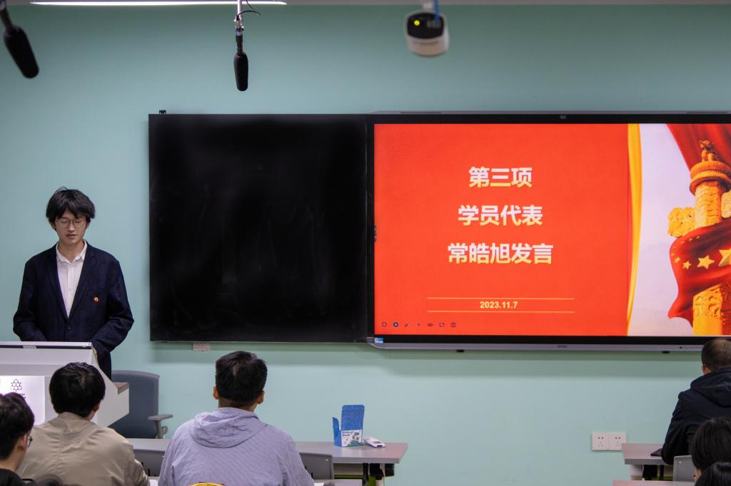 学员代表常皓旭作表态发言。他表示,全体学员应珍惜这次培训机会,以饱满的热情和严谨的态度投入到此次学习中去,努力提升自我,在党组织的精心培养下,早日成为一名真正的、光荣的共产党员。
