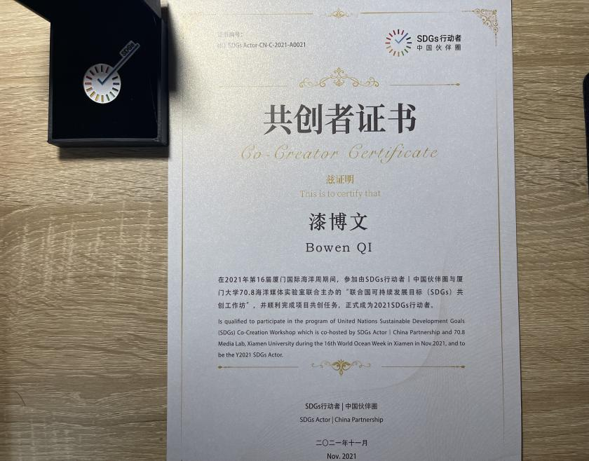 “机会总是留给那些有准备的人”,利用周末时间,漆博文与艾典一同组队,参加了“2021厦门国际海洋周|联合国SDG共创工作坊”招募活动,并获得“共创者证书”。一次地铁上的交流,让他们决定创立太阳成tyc122cc“3D创印社”。该社团致力于“3D打印技术”的实践操作和灵活应用,注重培养创新设计能力、结构分析能力、三维空间思维能力以及综合应用知识的创新能力。